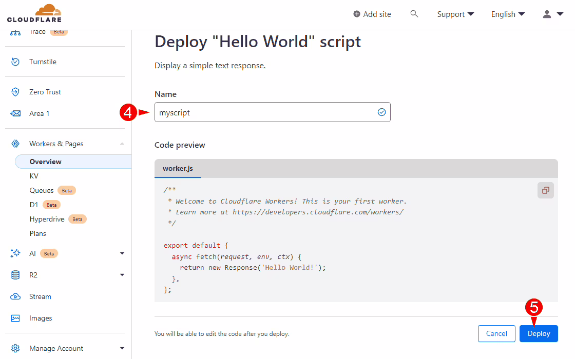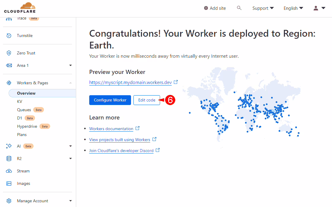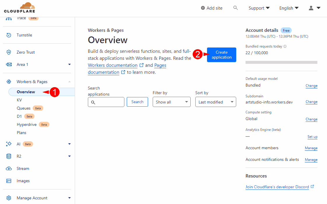 Go to CloudFlare Dashboard and sign up/in. If you are new to CloudFlare, it may ask you to add a domain. If you don’t want to add a domain, just open the above link again. On the Dashboard goto “Workers & Pages” and verify your email if needed. You will be asked to create a Workers subdomain. Enter the subdomain you want.